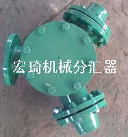 連云港市宏琦電力輔機有限公司生產分匯器是一個三通閥,通過導向板的切換可使膠球進入需要清洗的一側凝汽器中工作。一般一臺機組需兩臺分匯器,其進口通徑為DN100,分配口為DN89,膠球投用時可通過窺視窗觀察運行情況。