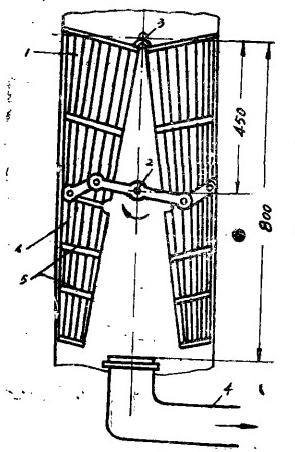 關于開關膠球清洗裝置也有二種方案,一種是現采用的,優點是開關方便一些;缺點是杠桿系統和旋轉軸都“貫穿”循環水管,增大了水阻,即使處于“短路”狀態此水阻仍去不掉。另一種利用類似于潤門開關,在收球網之外開和關,(圖3乙)它在“短路”狀態時,開啟機構已旋出循環水管外,可減少短路時的水阻,當然機構稍復雜一點,開關稍費事。我們擬在”3機采用這種機構,以和“4機對比。